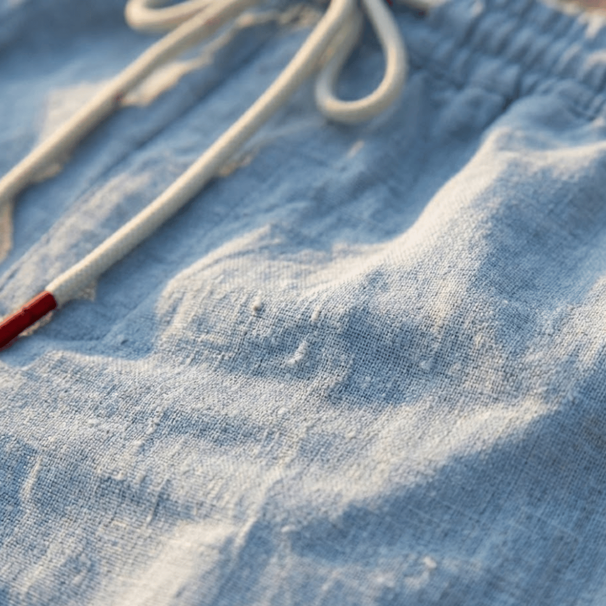 O linho natural da bermuda de linho masculina lisa permite maior ventilação da pele. Isso significa menos suor, mais frescor e conforto absoluto mesmo em dias quentes.