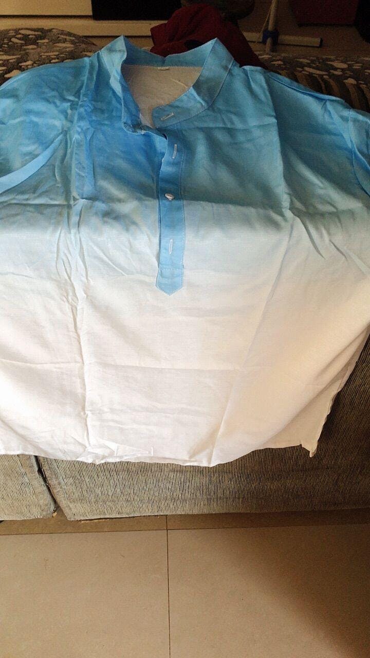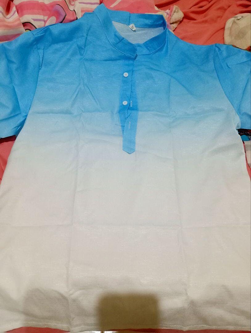 O efeito degradê azul para branco cria um visual elegante e único, ideal para quem gosta de usar peças diferenciadas que chamam atenção pela sutileza e bom gosto.