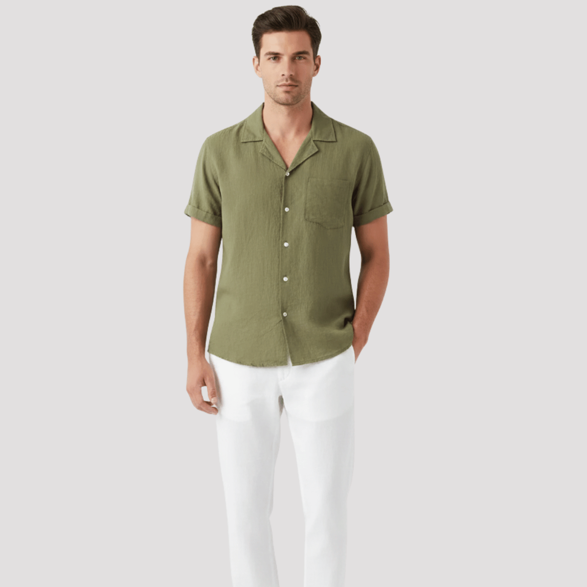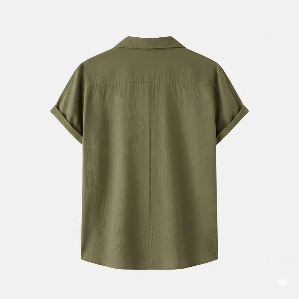 Com a nossa exclusiva camisa de linho manga curta, na cor verde militar, um tom que evoca aventura e sofisticação. Projetada para quem busca conforto sem abrir mão do estilo, esta camisa é a peça essencial para seus dias ensolarados e noites frescas.