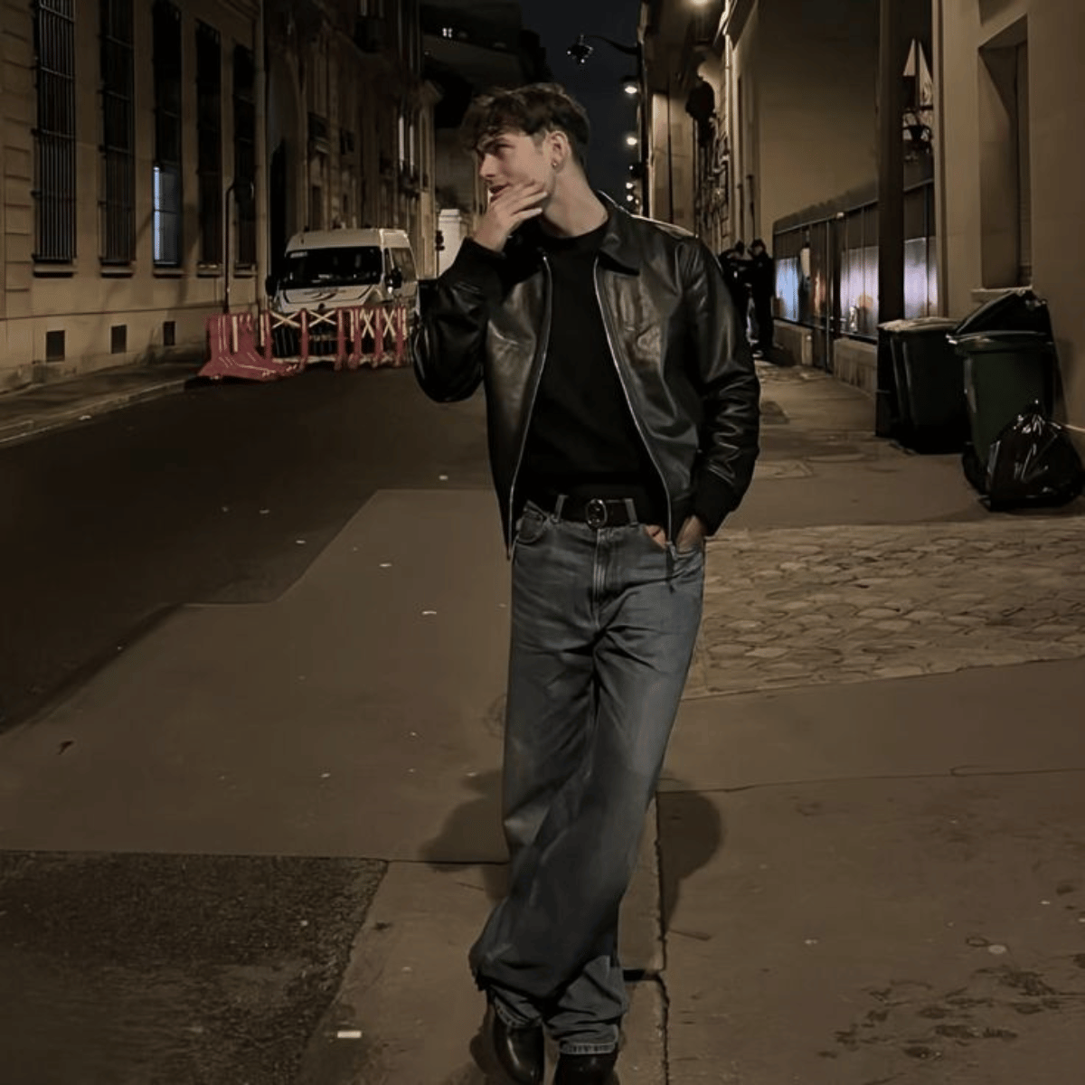 É a definição de poder e sofisticação. Ela é desenhada para o homem que domina os detalhes: o corte slim preciso que valoriza os ombros, os zíperes metálicos estrategicamente posicionados e a gola alta com fecho que impõe respeito.