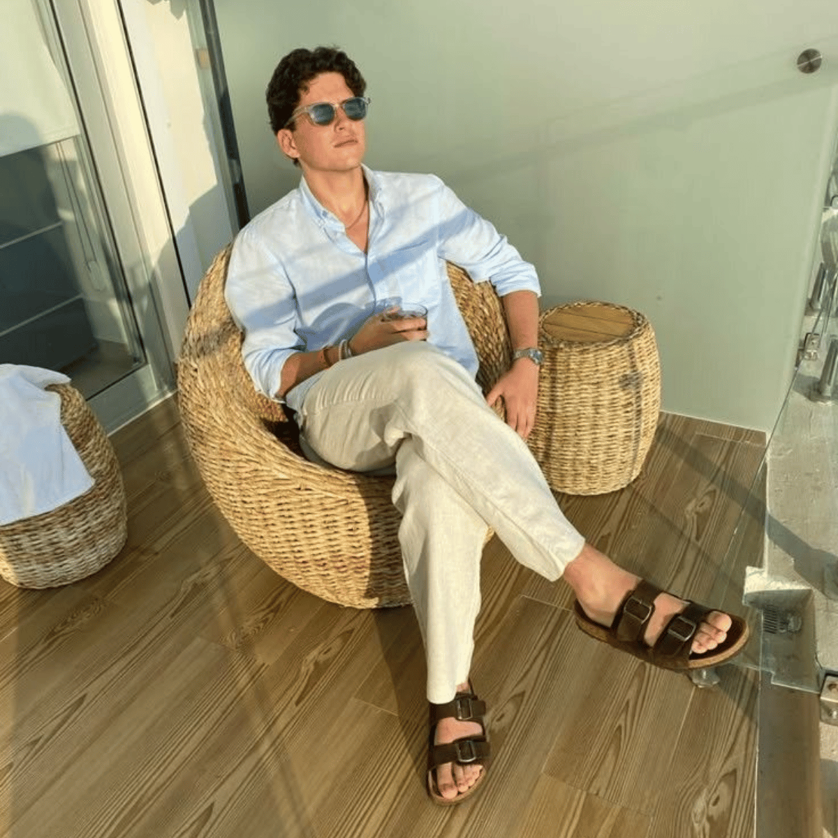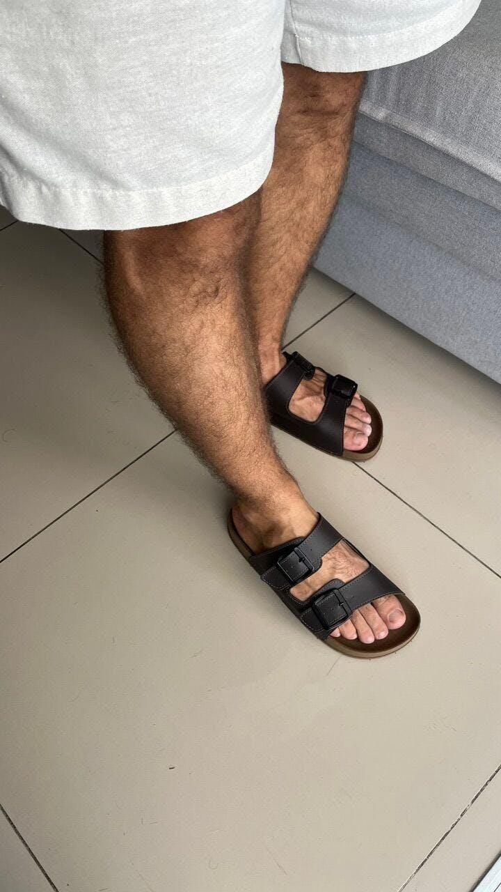 O segredo desta sandália de conforto masculina está na sua base de cortiça (cork) com formato anatômico, que se molda aos seus pés a cada uso. As tiras duplas com fivelas dão o toque de sofisticação e garantem o ajuste perfeito.